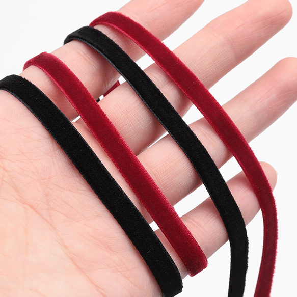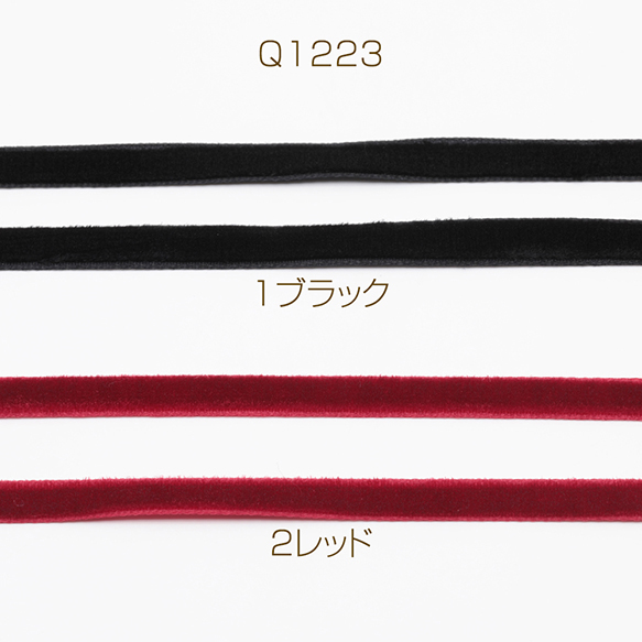 リボンテープ ベルベット 片面 ブラック/レッド 秋冬 飾り 手芸材料 幅約0.6cm(4m)