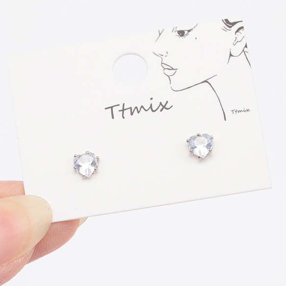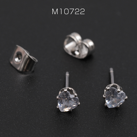 デザインピアス シンプル ハートのジルコニア キラキラ メタルピアス 約5mm(6ヶ)