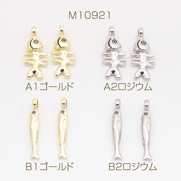 マリンチャーム さかな 魚 ホネ シュール 立体 メタルチャーム 全4種(2ヶ)
