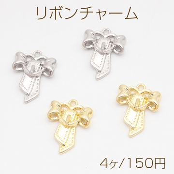 リボンチャーム リボン ベルト風 かわいい メタルチャーム 約18×24mm(4ヶ)