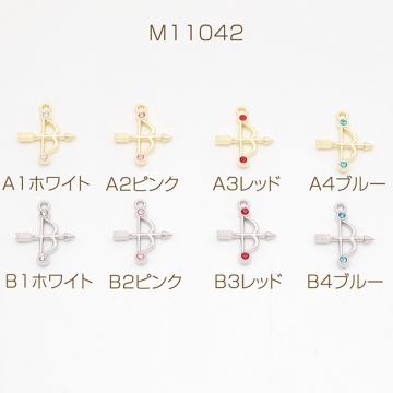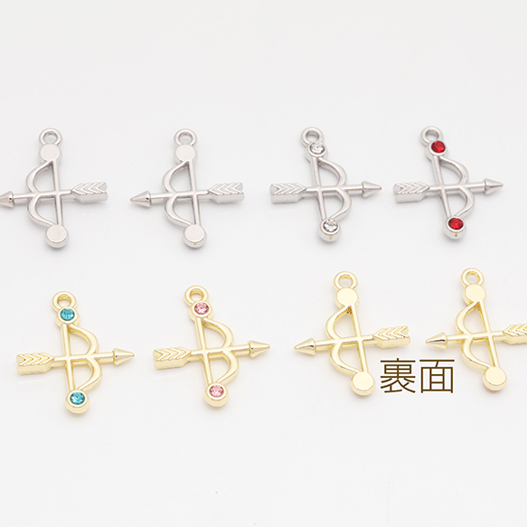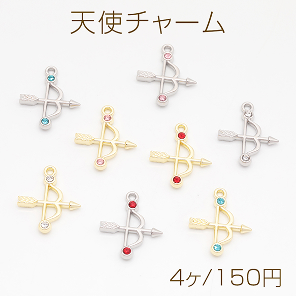 天使チャーム キューピッドの矢 天使の矢 カラフル ストーン付き 立体 メタルチャーム 約16×19mm(4ヶ)