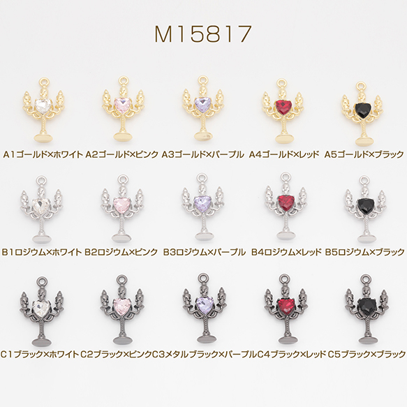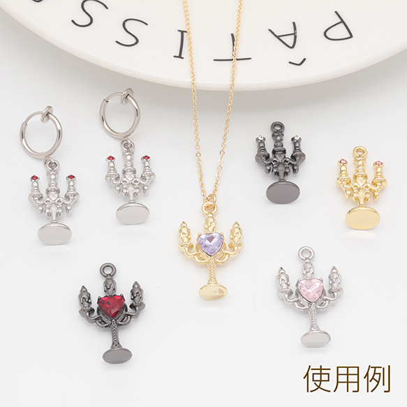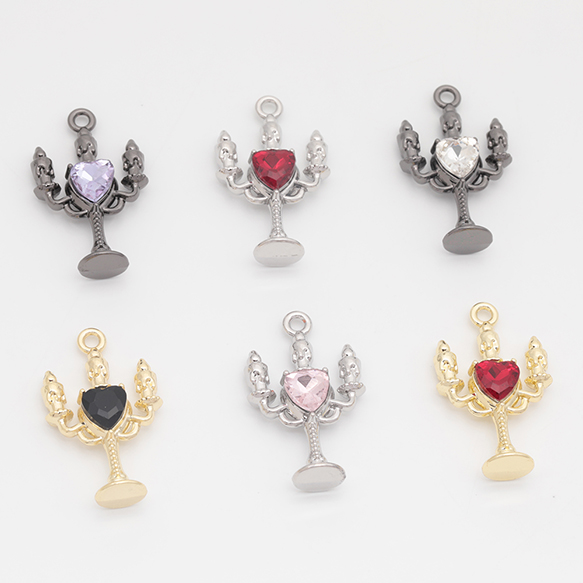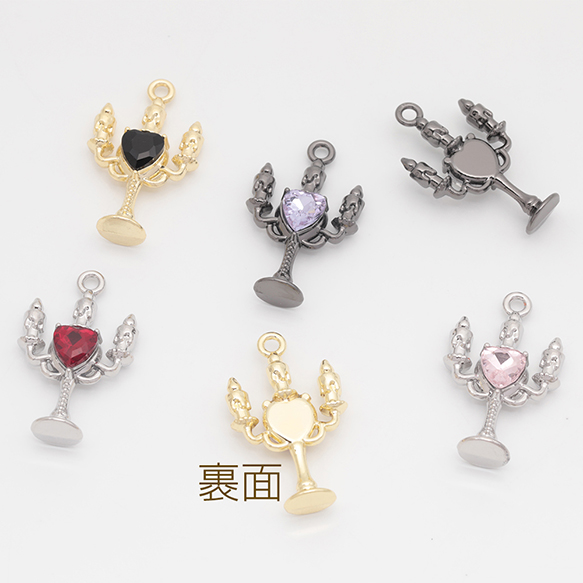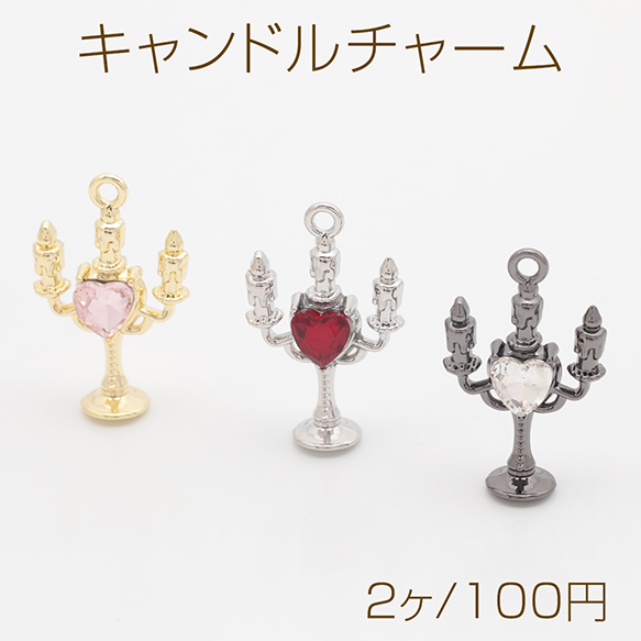 キャンドルチャーム ろうそく 洋風 レトロ ハートのストーン付き 立体 メタルチャーム 約16×26mm(2ヶ)