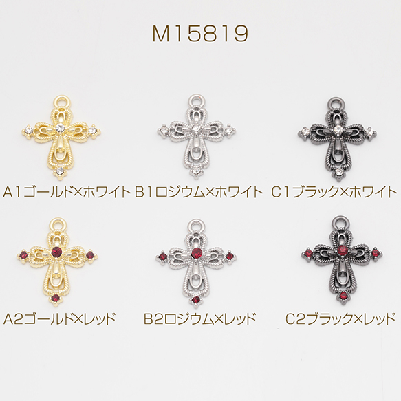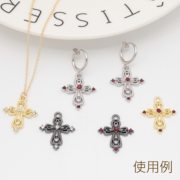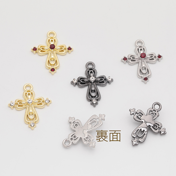 クロスチャーム 十字架 ストーン付き 半面 デザインチャーム メタルチャーム 約18×22mm(4ヶ)