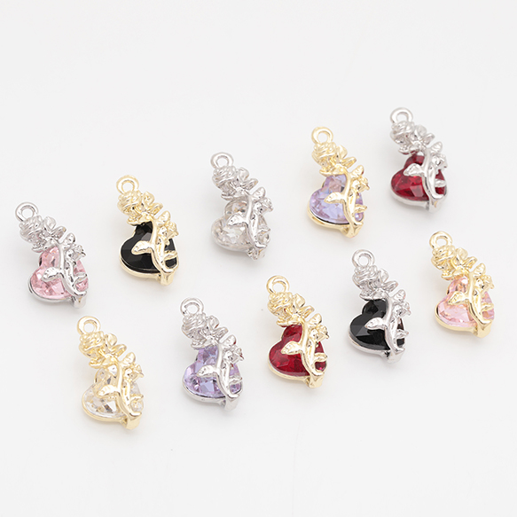ハートチャーム ローズ 薔薇 カラフル ストーン付き 立体 メタルチャーム 約9×18mm(2ヶ)