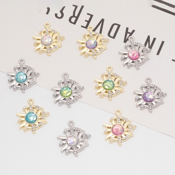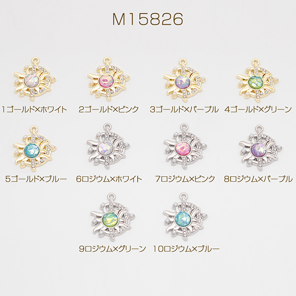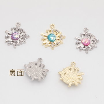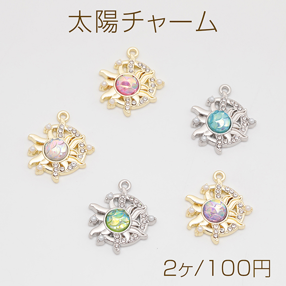 太陽チャーム おひさま キラキラ ABSパール&ストーン付き 半面 樹脂チャーム メタルチャーム 約18×21mm(2ヶ)