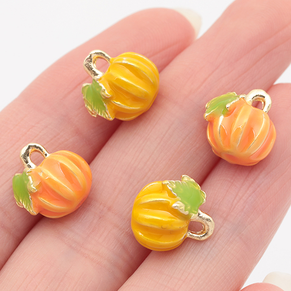 エポチャーム かぼちゃ 南瓜 童話風 ミニチュア 立体 エポチャーム メタルチャーム 約11×11mm(2ヶ)