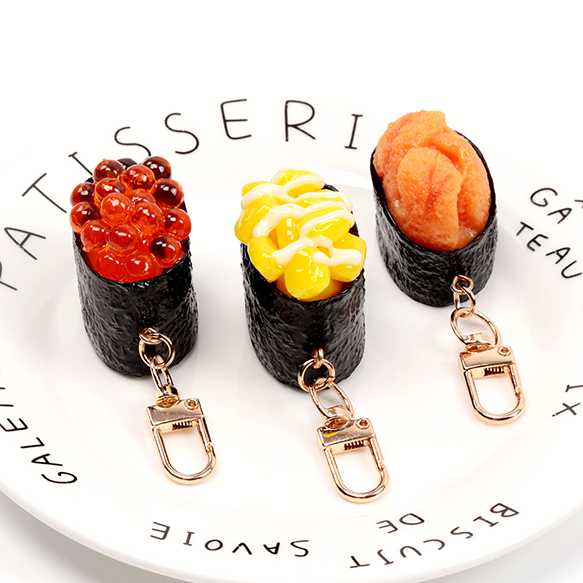 キーホルダー コーン軍艦 食品サンプルキーホルダー ミニチュアフードストラップ U字型ナスカン付き 2.5×8cm