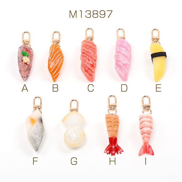 キーホルダー アジの握り寿司 食品サンプルキーホルダー ミニチュアフードストラップ U字型ナスカン付き 約2.3×8.5cm
