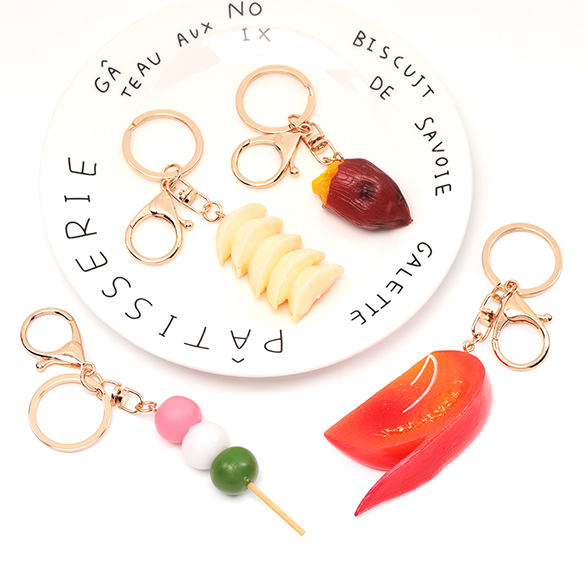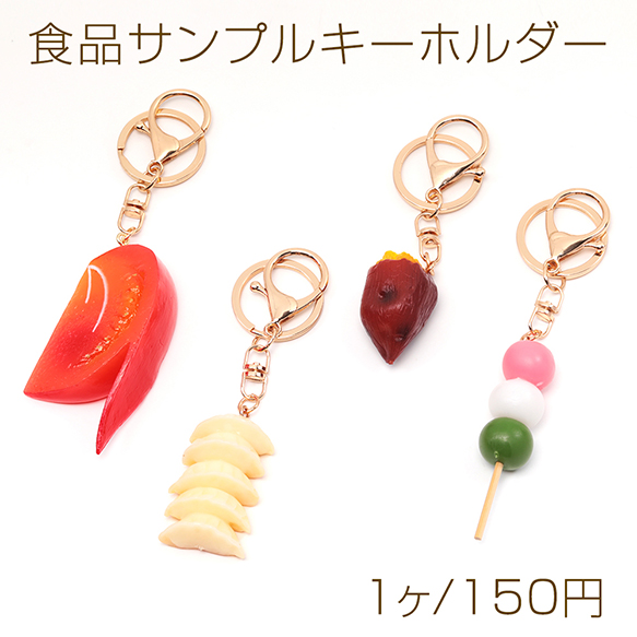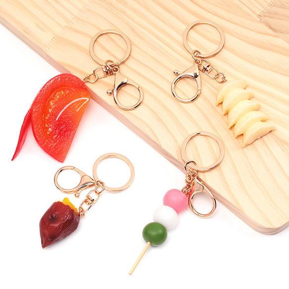 食品サンプルキーホルダー 焼き芋 トマト 餃子 三色団子 食べ物 ミニチュア 全4種(1ヶ)