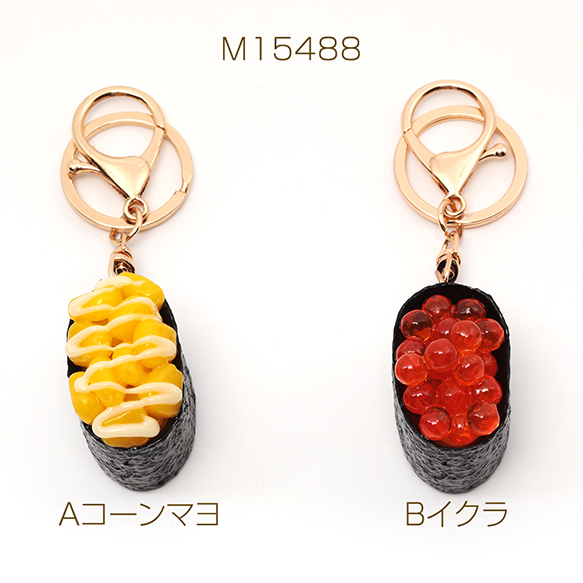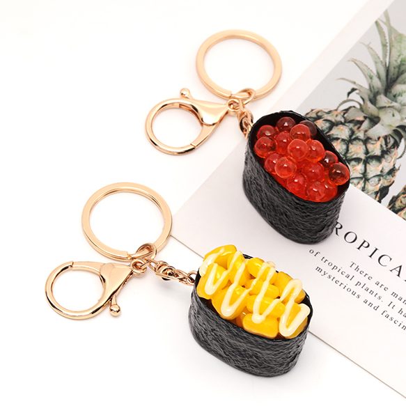 食品サンプルキーホルダー コーンマヨ イクラ 軍艦 寿司 食べ物 ミニチュア 全3種(1ヶ)