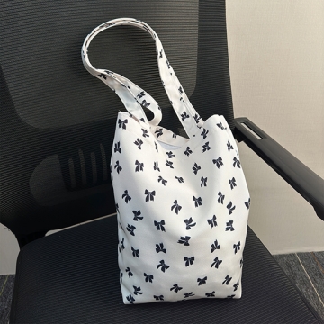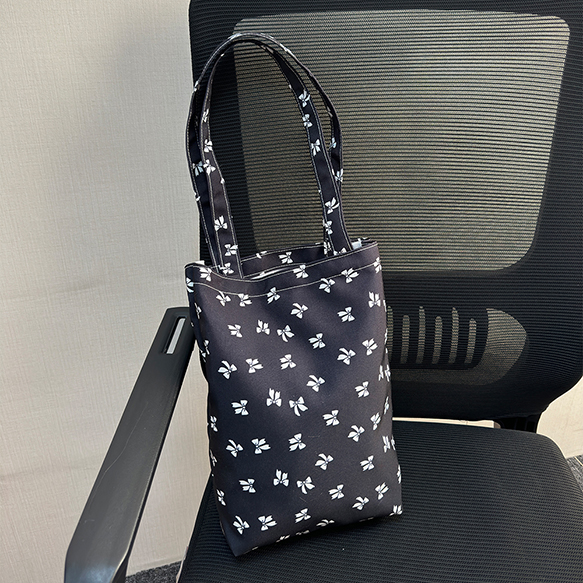 トートバッグ 縦型 リボン柄 手さげカバン サブバッグ マチあり キャンバス かばん 約10×27×30cm(1ヶ)