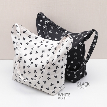 トートバッグ 大容量 ボタン付き A4・B4サイズも入る 大きめかばん リボン柄 マチあり 約12×36×42cm(1ヶ)