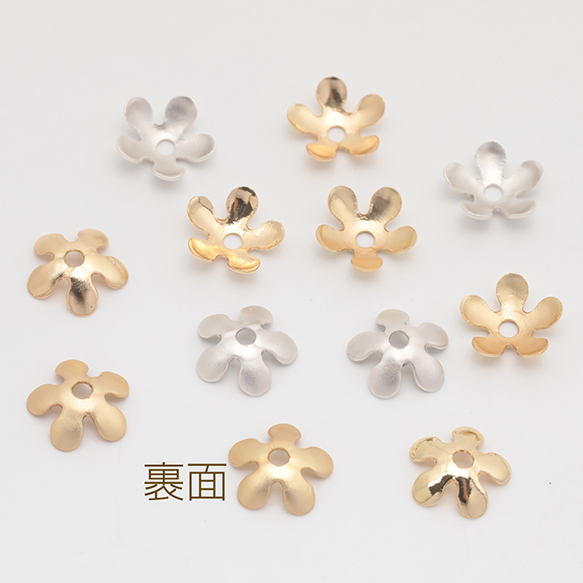 メタルフラワーパーツ 花びら 中心に穴あり 五弁花 ビーズキャップ 花座パーツ メタルパーツ 約9mm(15ヶ)