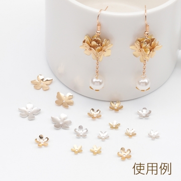 メタルフラワーパーツ ミニ 花びら 中心に穴あり 五弁花 ビーズキャップ 花座パーツ メタルパーツ 約7mm(15ヶ)