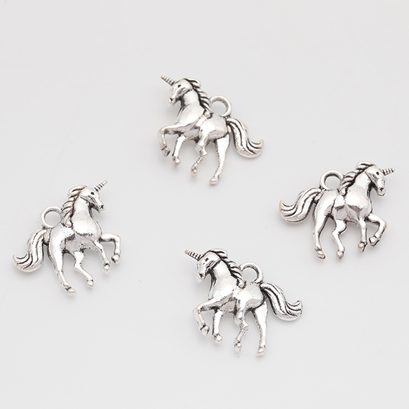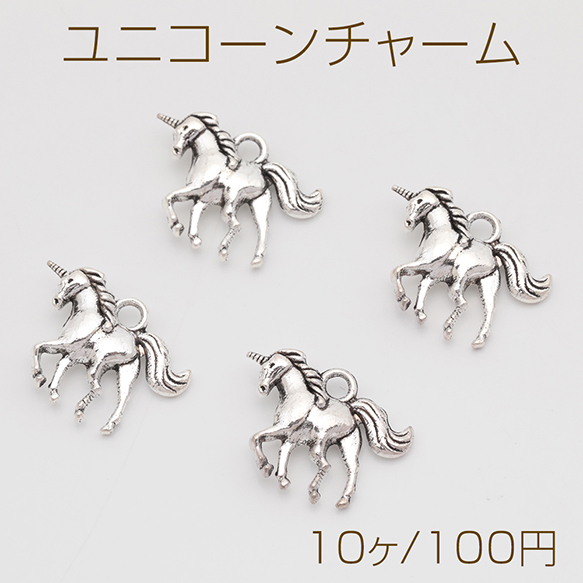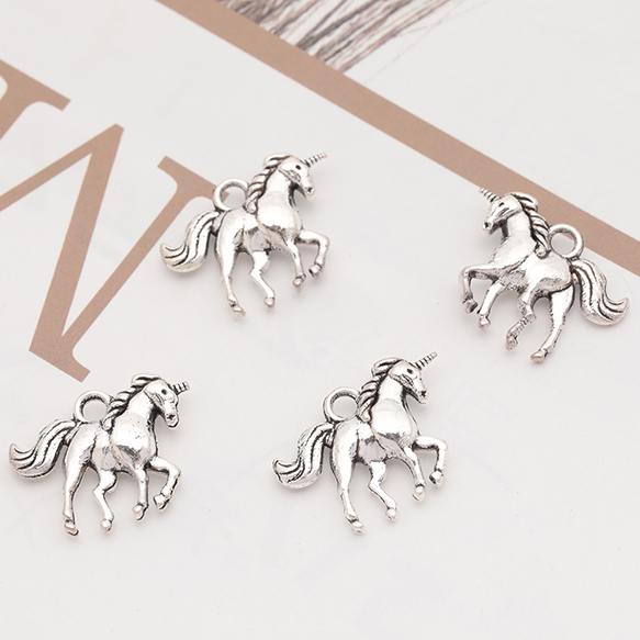 ユニコーンチャーム 幻想的 アンティークシルバー 立体チャーム メタルパーツ 約15×18mm(10ヶ)