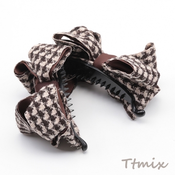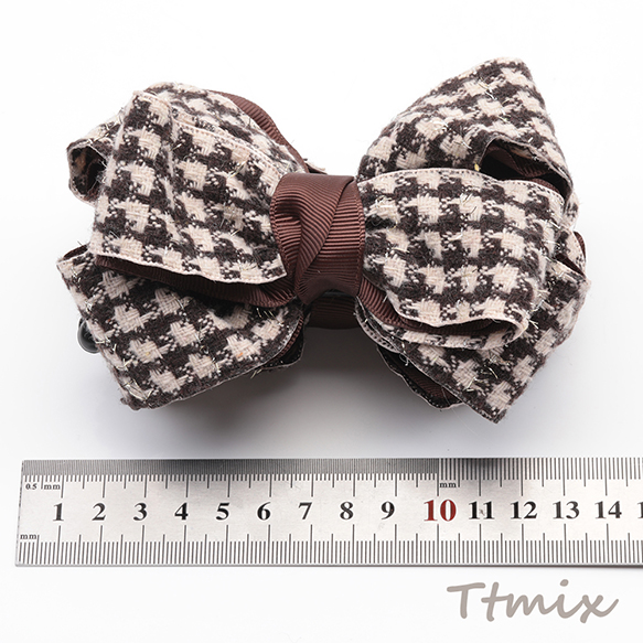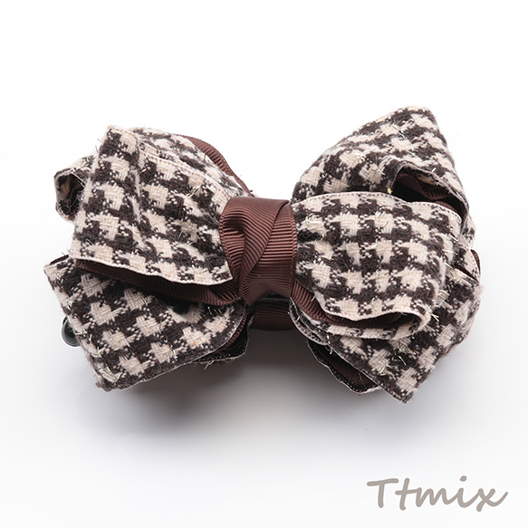 バナナクリップ リボン チェック柄 ブラウン 秋冬 おしゃれ 髪留め 髪飾り ※訳ありサービス品 返品不可(1ヶ)