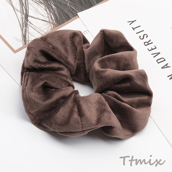 シュシュ ベルベット ブラウン 無地 おしゃれ 髪留め 髪飾り ヘアゴム ※訳ありサービス品 返品不可(1ヶ)