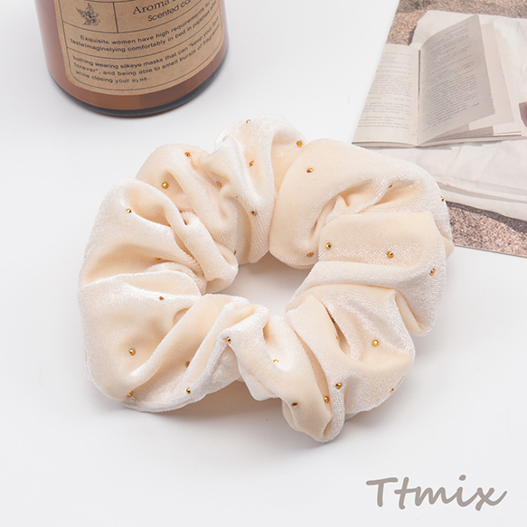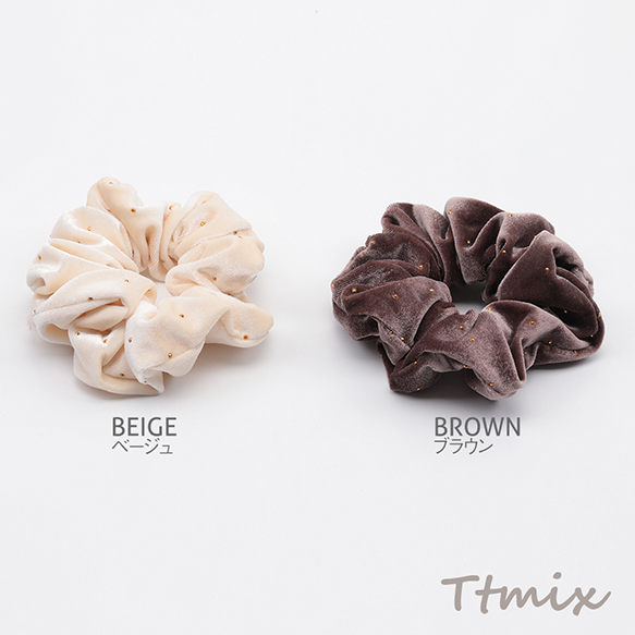 シュシュ ベルベット 秋冬 ベージュ/ブラウン おしゃれ 髪留め 髪飾り ヘアゴム ※訳ありサービス品 返品不可(1ヶ)