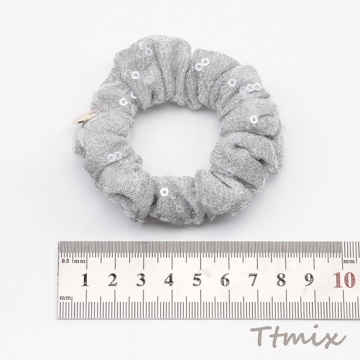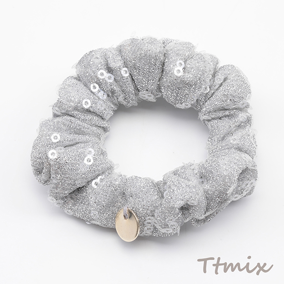 シュシュ スパンコール シルバー ヘアゴム 髪留め 髪飾り ヘアアクセサリー ※訳ありサービス品 返品不可(1ヶ)