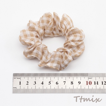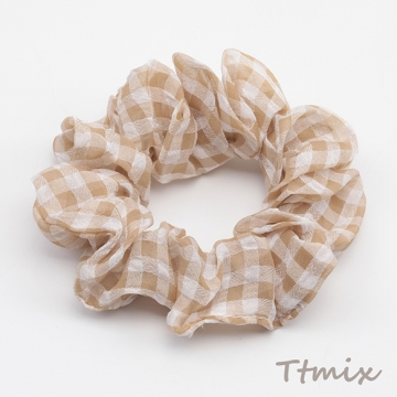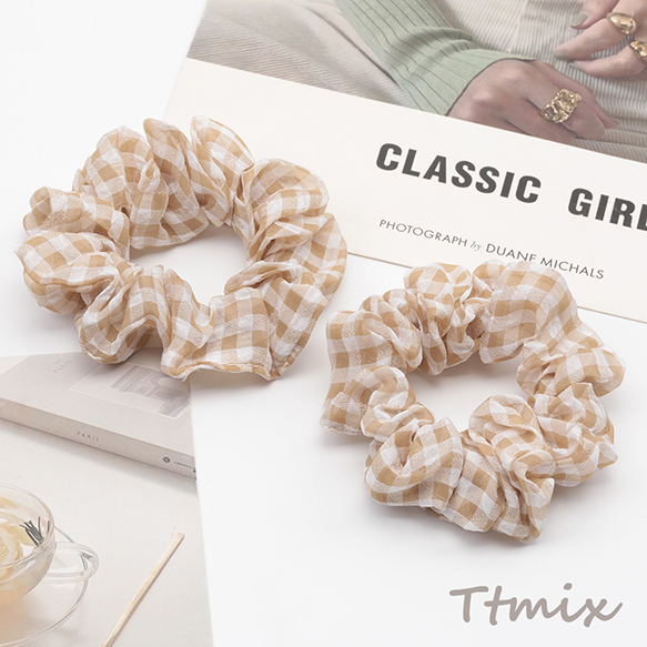 シュシュ チェック柄 ベージュ ヘアゴム 髪留め 髪飾り ヘアアクセサリー ※訳ありサービス品 返品不可(1ヶ)