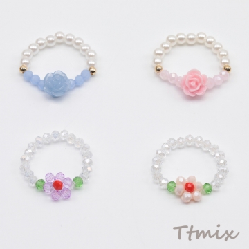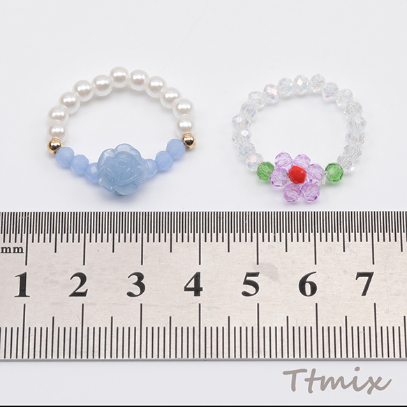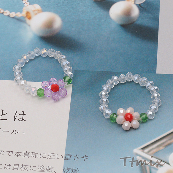 ビーズリング フラワー ガラスビーズ 手作り キュート 可愛い ゴム 伸縮 指輪(1ヶ)※サービス品のため返品不可