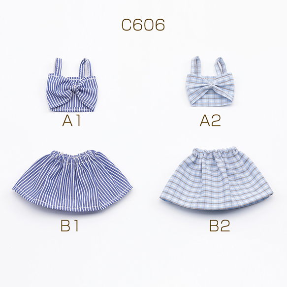 ドール用洋服 ストライプ柄 チェック柄 モールド―ル ぬいぐるみ 人形用 着せ替え ミニチュア 上下バラ売り 全4種(1ヶ)