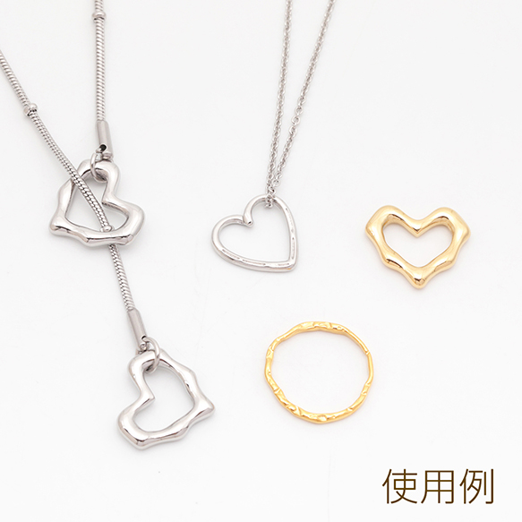 ステンレス製メタルフレームパーツ 不規則ラウンド型 リングパーツ メタルパーツ 14KGP 約14.5mm(1ヶ)