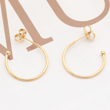 ステンレス製ピアス金具 C字 横向き カン無し 14KGPゴールドメッキ 約1.2×20mm(2ヶ)