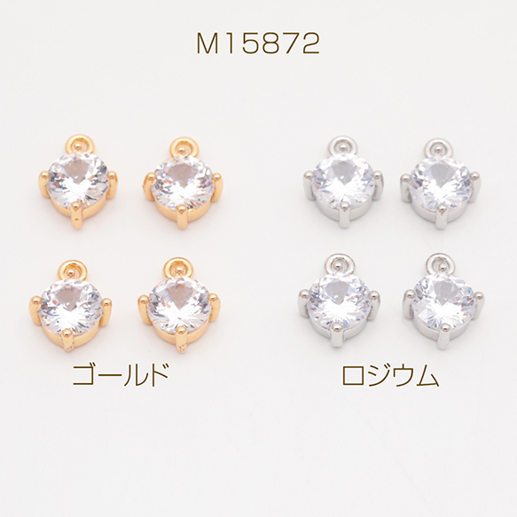 ジルコニアチャーム ラウンド 一粒タイプ ジルコニア ストーン付き メタルチャーム 約8×10.5mm(2ヶ)