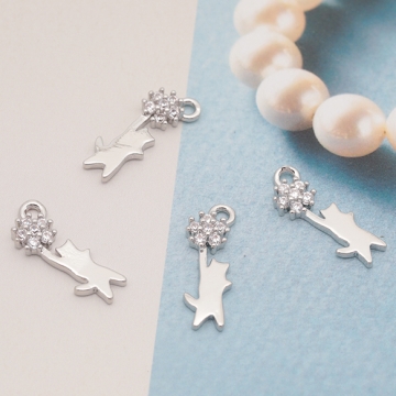 ジルコニアチャーム ネコ こねこ 猫 縦伸び ラインストーン付き メタルプレートチャーム 約5×17mm(2ヶ)