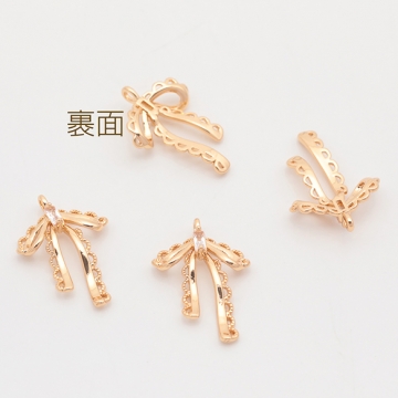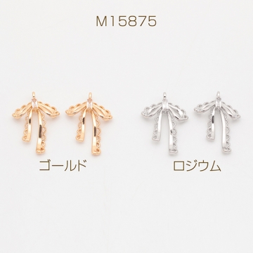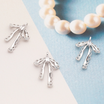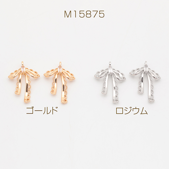ジルコニアチャーム りぼん レース風 ストーン付き リボンチャーム メタルチャーム 約13.5×20mm(2ヶ)