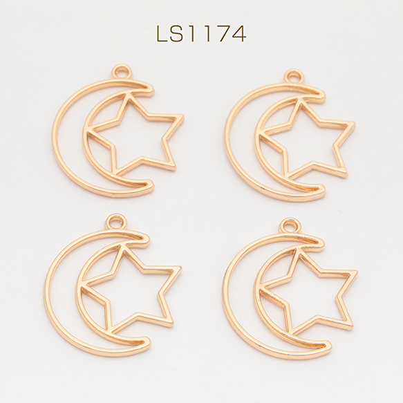 メタルフレームチャーム 月と星 宇宙チャーム UVレジン メタルチャーム 約23×28mm(4ヶ)