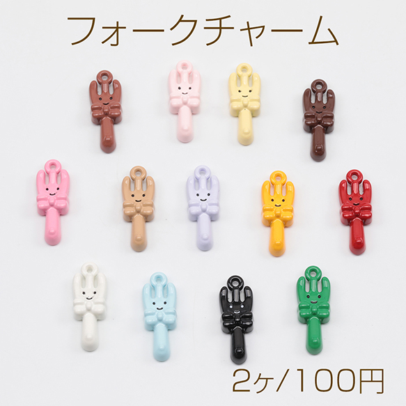 フォークチャーム カラフル エポ スマイル リボン付き 食器チャーム エポチャーム メタルチャーム 約7.5×21mm(2ヶ)