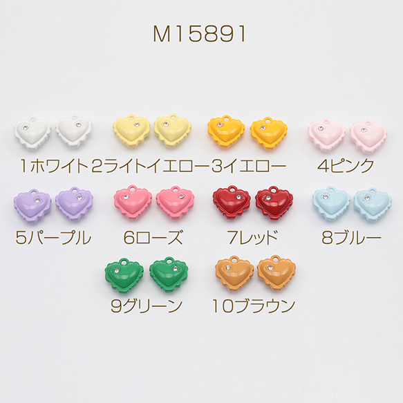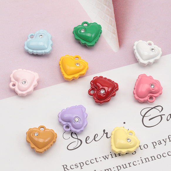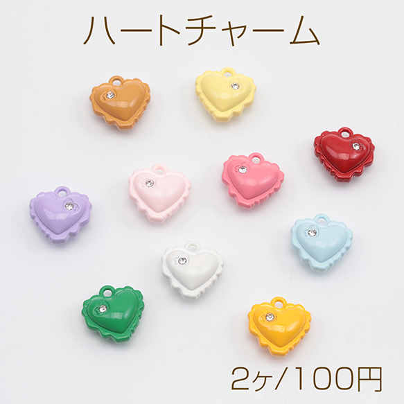 ハートチャーム カラフル エポ ハート ラインストーン付き ぷっくり 立体 メタルチャーム 約12×12mm(2ヶ)