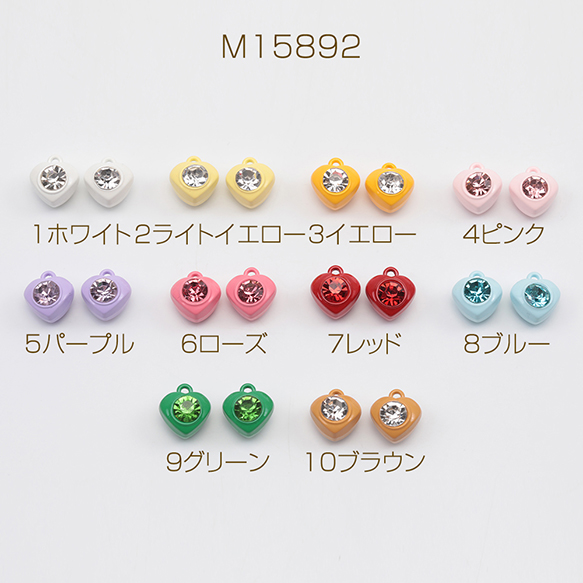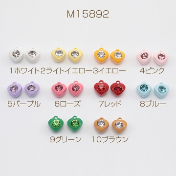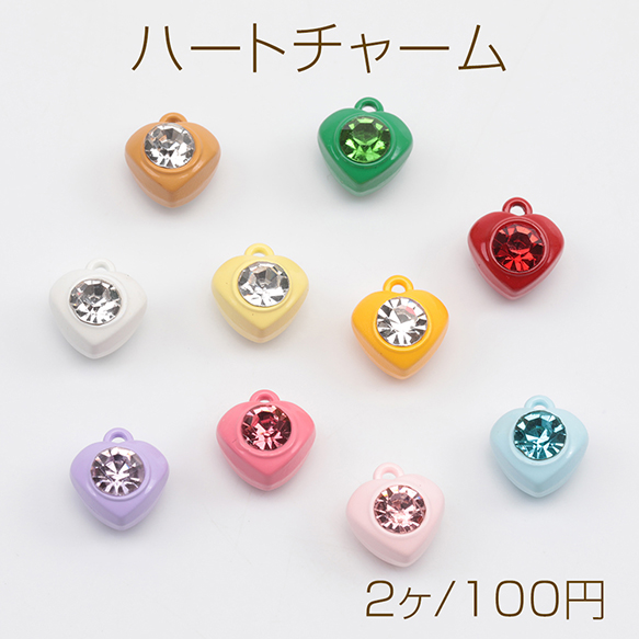 ハートチャーム カラフル エポ ハート 一粒 ガラスストーン付き メタルチャーム 約10×11mm(2ヶ)
