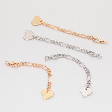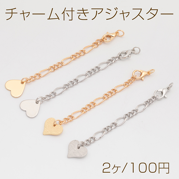 チャーム付きアジャスター ハート デザインチェーン ブレスレット/ネックレス延長チェーン カニカン付き 約6.5cm(2ヶ)