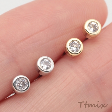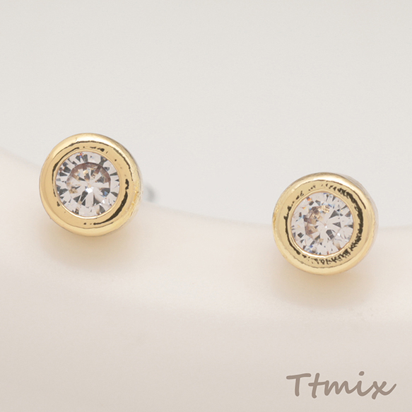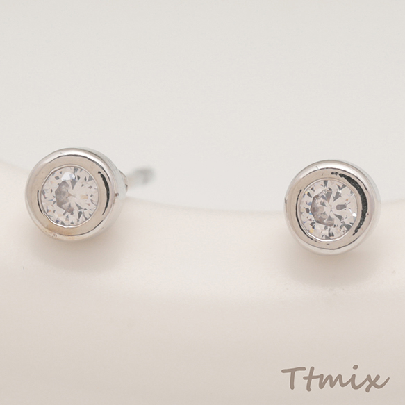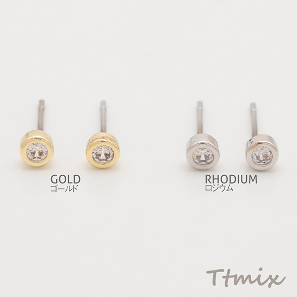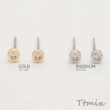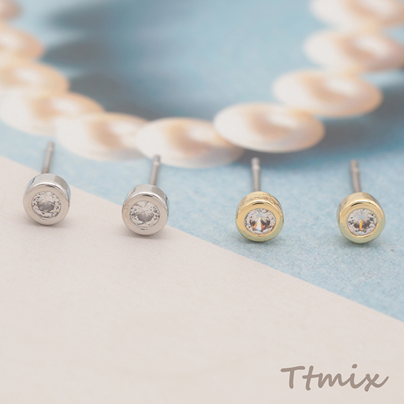 デザインピアス ラウンド 一粒 ジルコニア ストーン付き キャッチ鉄製 メタルピアス 約3.6mm(4ヶ)