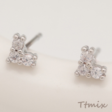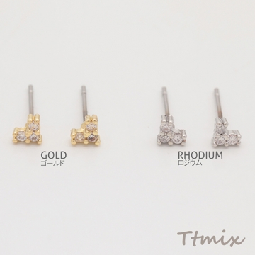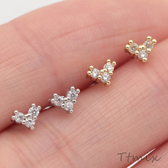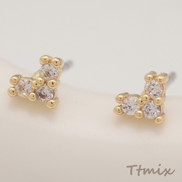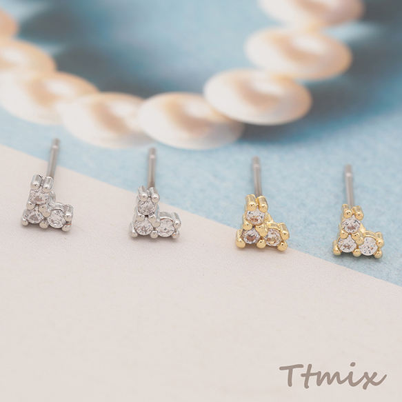 デザインピアス ハート型 ジルコニア ストーン付き キャッチ鉄製 ジルコニアピアス 約4×5mm(4ヶ)