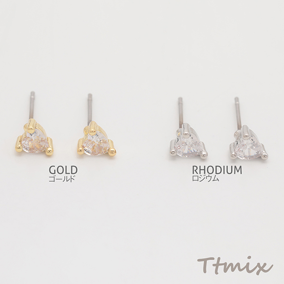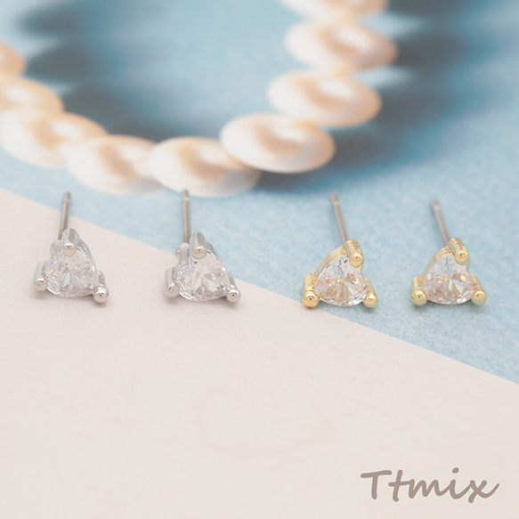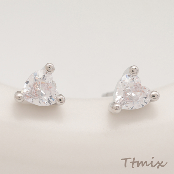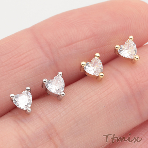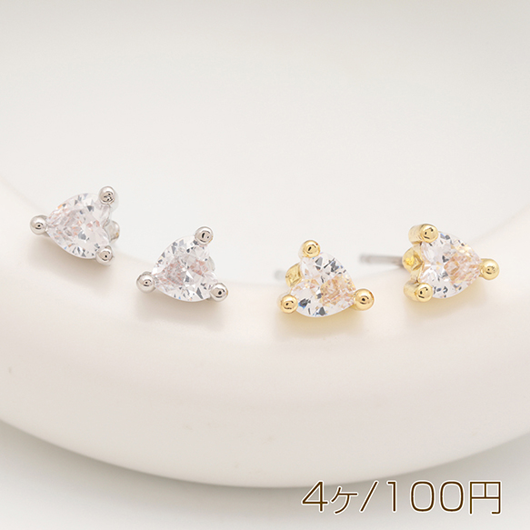 デザインピアス ハート 一粒 ジルコニア ストーン付き キャッチ鉄製 ジルコニアピアス 約4.5×5mm(4ヶ)