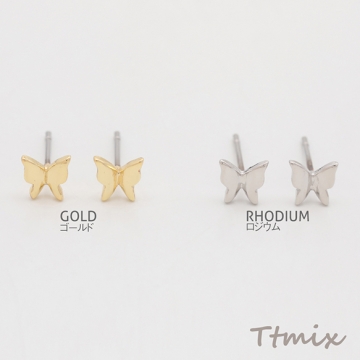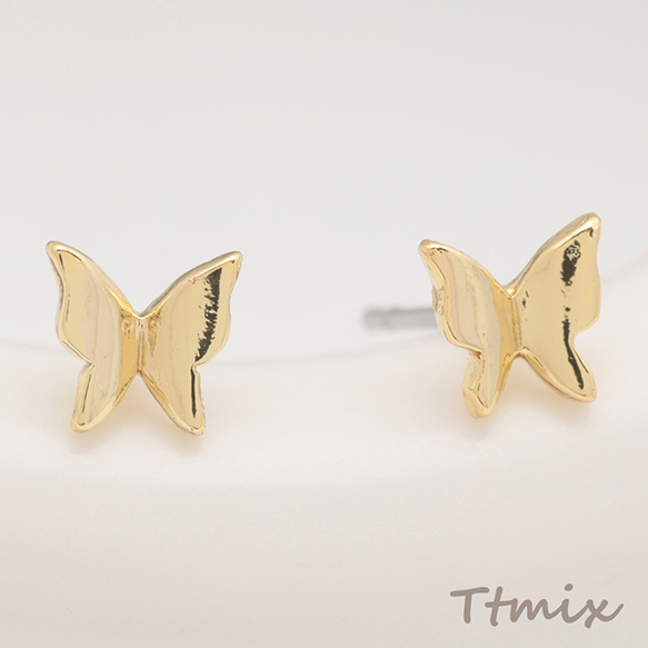 デザインピアス ちょうちょ 蝶々 キャッチ鉄製 メタルピアス 約5×5mm(4ヶ)