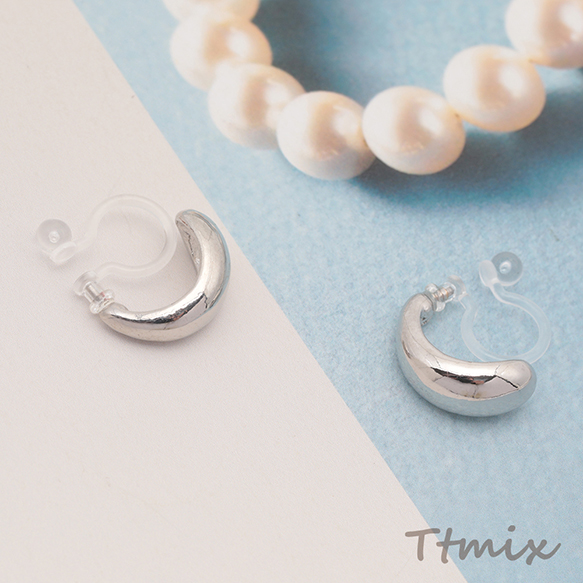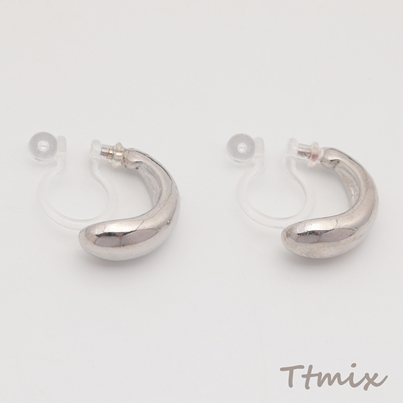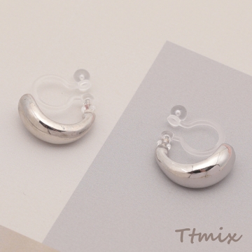 デザインピアス ノンホールピアス C字 ポスト樹脂製 ピアス穴不要 メタルピアス 約5×13mm(1ペア)