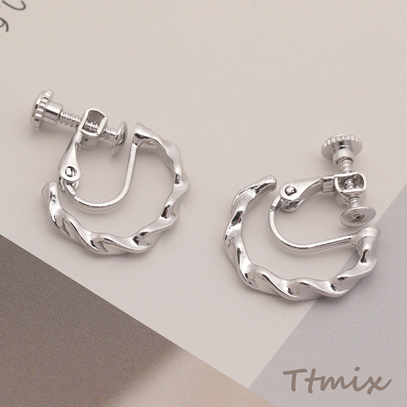 デザインイヤリング C字 ツイスト ネジバネ式 メタルイヤリング 約3×18mm(1ペア)