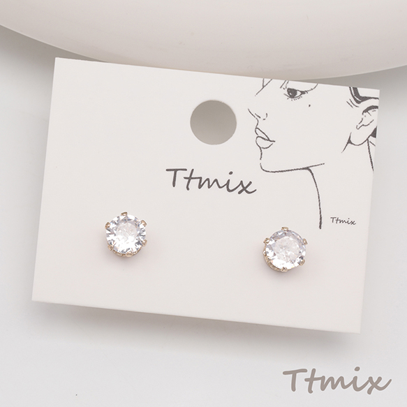 デザインピアス 一粒 ジルコニア ストーン付き スタッドピアス 約3mm&4mm&5mm(3ペア/セット)