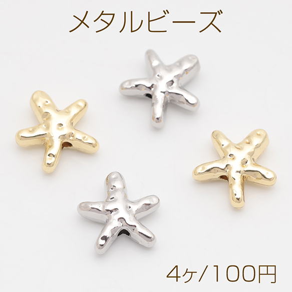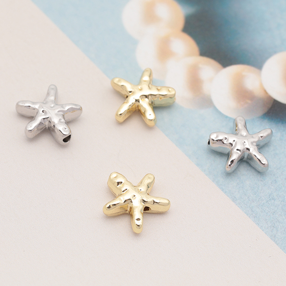 メタルビーズ ヒトデモチーフ マリンパーツ ストラップ ピアス ブレスレット制作におすすめ 縦穴 約9mm (4ヶ)