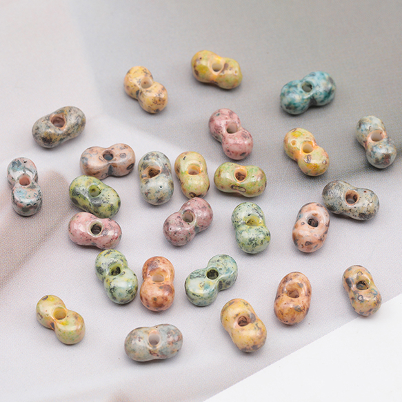 チェコ調ガラスビーズ ピーナッツ型 チェコガラス風 アンティーク風 カラーランダム 約4.5×8mm(20ヶ)