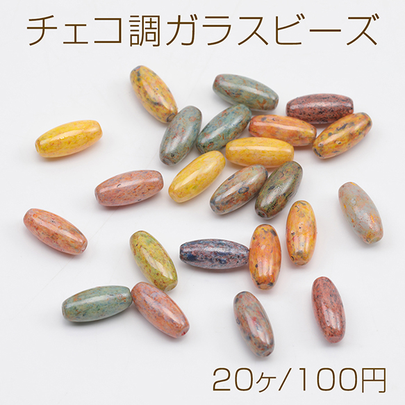 チェコ調ガラスビーズ ロングオーバル チェコガラス風 アンティーク風 カラーランダム 約4×10mm(20ヶ)