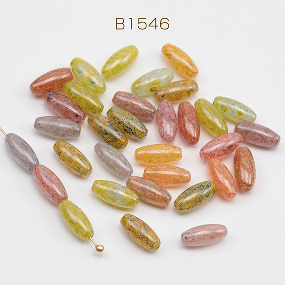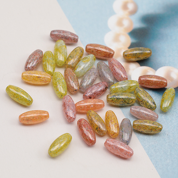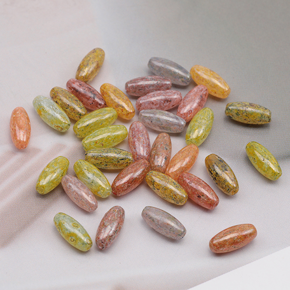 チェコ調ガラスビーズ ロングオーバル チェコガラス風 アンティーク風 カラーランダム 約4×10mm(20ヶ)