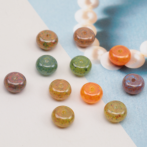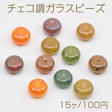 チェコ調ガラスビーズ そろばん型 ソロバンビーズ チェコガラス風 アンティーク風 カラーランダム 約5×8mm(15ヶ)