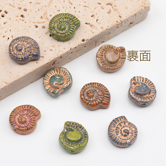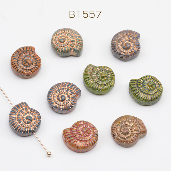 チェコ調ガラスビーズ アンモナイト シェル型 貝 チェコガラス風 アンティーク風 カラーランダム 約12×13mm(10ヶ)