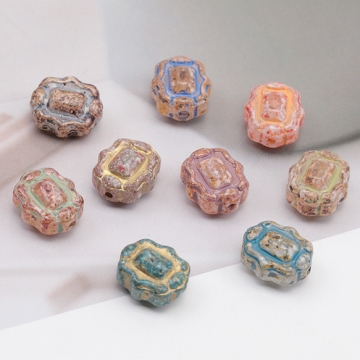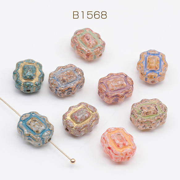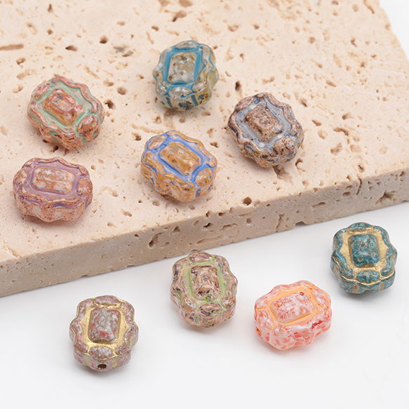 チェコ調ガラスビーズ スクエア 波型 チェコガラス風 アンティーク風 カラーランダム 約10×12mm(10ヶ)